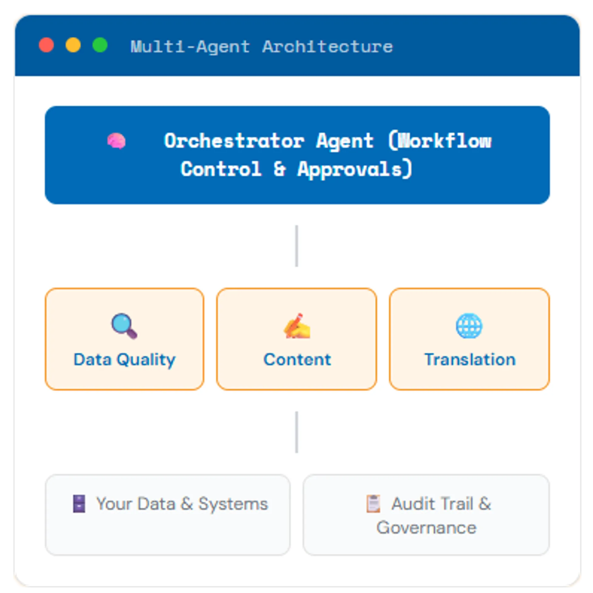 - Audit trails and traceability of all agent actions